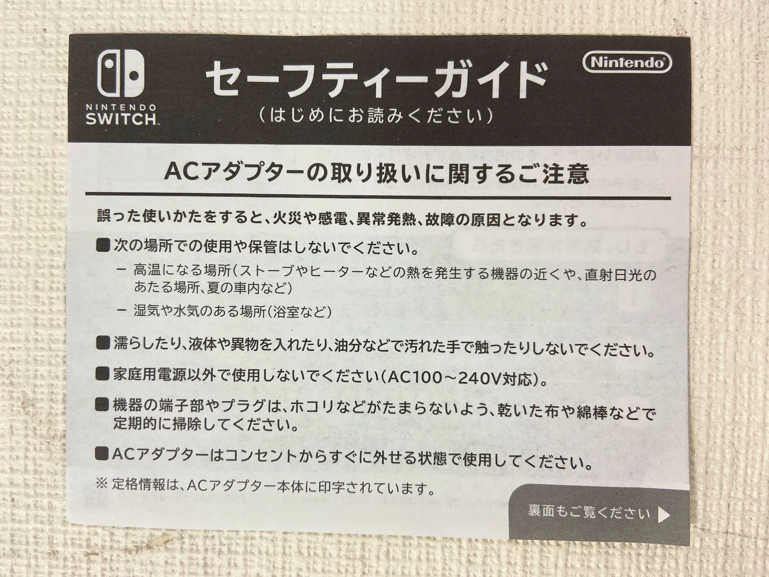 筆者撮影:Nintendo Switch ACアダプター